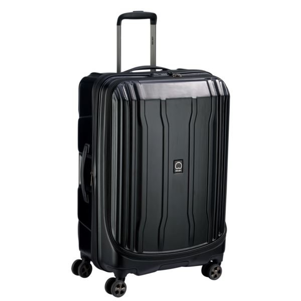 There's nothing hard to handle about this hard-sided upright carry-on. Made from Delsey's exclusive thermoplastic composite blend Pleniumâ„¢, this carry-on is ultra-light, super tough and packs a whole lot of stuff without all the weight. It features a unique top lid opening, Dual-Densityâ„¢, Silent-Core double spinner wheels for superior mobility, and expands for maximum capacity. The roomy interior features tie-down straps, zipped pockets and also a water-resistant pocket for easy organization and added protection. 27.5" x 17.75" x 11.5", 9.6 lbs.