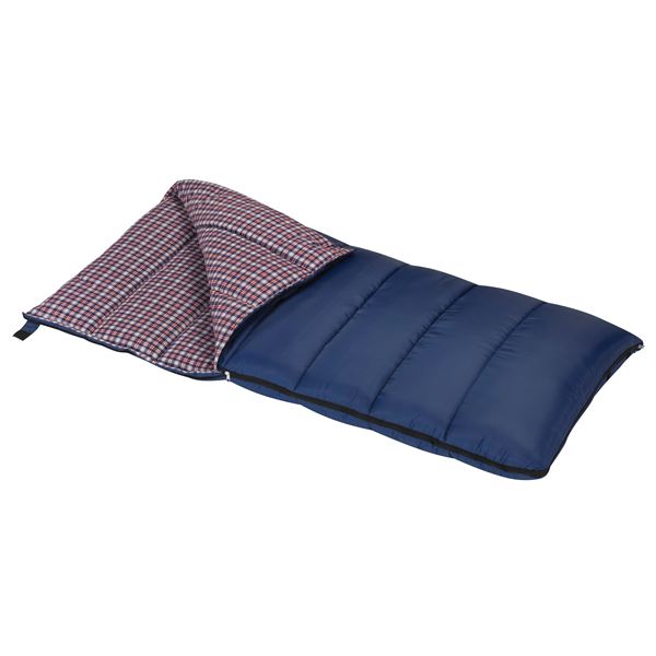 33" x 78" bag is made of 190T polyester with a 25 degree temperature rating and is filled with 4 lbs. of Insul-Therm. It has a poly/cotton flannel liner and features quilt-thru construction for added warmth; Velcro tab that secures zipper; large, 2-way main zipper offers versatile venting and it unzips fully to convert to a blanket.