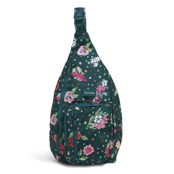 Now in sustainably sourced ReActive material made from recycled plastic water bottles (10 go into every pack!), it's a smart choice for you and the environment. Lightweight and water-repellent, too, it can be worn across your back or your chest for easier accessibility. Exterior features a zip pocket at back side seam and a patch pocket compartment with an external zip pocket, a slip pocket and two pen slips inside it; D ring at strap top for keys; and zip closures.9.25" w x 19.25" h x 3.0" d with 37.5" adjustable strap