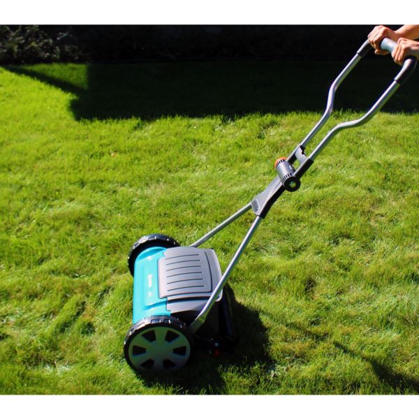 Allows for low-noise work as well as easy pushing-the cutting cylinder & bottom blade do not touch. Cutting cylinder is made of quality steel & ground bottom blade guarantees a clean & precise cut. Large wheels facilitate steering & allow for better grip on the lawn with cutting height adjustment of .50"-1.65". Ergonomically formed handle makes it easy to push & store, handle with quick-lock feature allows you to simply & quickly fold up mower.