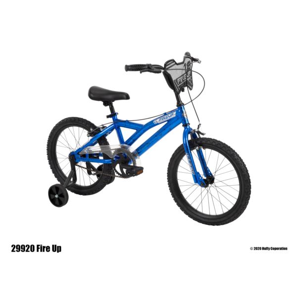 The Fire-Up has a new Hammertone paint finish that delivers a fun splatter look! It has a triad frame; steel unicrown fork with leading edge dropouts; front and rear handbrake and rear coaster brake; 18" x 2.125" freestyle tires with 28-spoke rims; and durable training wheels for stability for young riders. The comfortable seat features an alloy quick release that is a snap to adjust the height for the right fit!