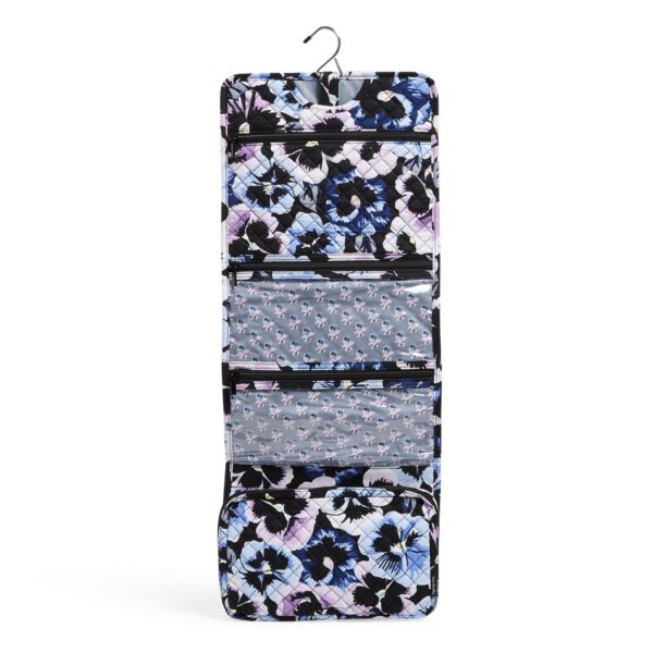 Hanging Travel Organizer - Recycled Cotton - Plum Pansies