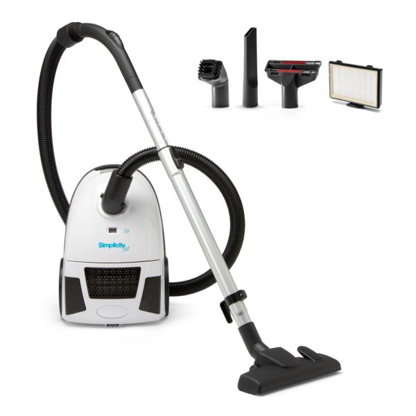 The JILL canister vacuum has a 10-Amp motor, along with an aluminum telescopic wand and comes with a HEPA media bag and filter. Great on bare floors and rugs. It features suction control, 10 inch cleaning width, 360 degree hose swivel, 18.5-foot power cord; full bag indicator; tools/tool caddy, dusting brush, rug/floor tool, crevice tool and upholstery tool. 2-year limited warranty.