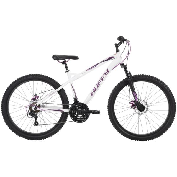 Front suspension fork. 18-speed index twist shifting. Shimano rear derailleur. Padded railed saddle. Metaloid high-gloss finish rails. Front disc and rear linear pull brakes. Alloy quick-release seat binder. Recommended ages 13+. Some assembly required.