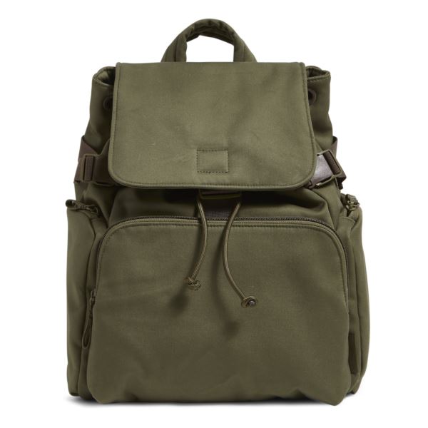 Backpack with a pocket and place for every essential. Its drawstring closure and clever side clips allow you to instantly adjust the bag to your needs. Made from new Recycled Cotton, the function-focused Utility Collection features an unquilted finish and Vera Bradley's first-ever solid cotton colors! Exterior has a front zip compartment (offering a pen slip, 2 slip pockets and a zip pocket) and 2 side zip pockets; interior has a slip pocket; drawstring and buckle closures; 15L capacity. 10"Wx14"Hx6.5"D with a 33.25" adjustable strap and 3" handle drop.