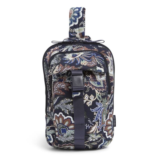 With so many ways to wear and a spot for every essential, this sling backpack is ready for any adventure. Lots of pockets and a comfortable padded strap ensure this bag has your back (or front!) all the time. Made from Recycled Cotton, the function-focused Utility Collection features an unquilted finish and Vera Bradley's first-ever solid cotton colors! Exterior has a front flap pocket with buckle, a zip pocket, and a back hidden zip pocket; interior has a slip pocket and a zip pocket; zip and buckle closures. 7.0"W x 10.5"H with 47" adjustable strap.