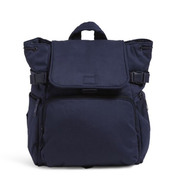 Backpack with a pocket and place for every essential. Its drawstring closure and clever side clips allow you to instantly adjust the bag to your needs. Made from new Recycled Cotton, the function-focused Utility Collection features an unquilted finish and Vera Bradley's first-ever solid cotton colors! Exterior has a front zip compartment (offering a pen slip, 2 slip pockets and a zip pocket) and 2 side zip pockets; interior has a slip pocket; drawstring and buckle closures; 15L capacity. 10"Wx14"Hx6.5"D with a 33.25" adjustable strap and 3" handle drop.