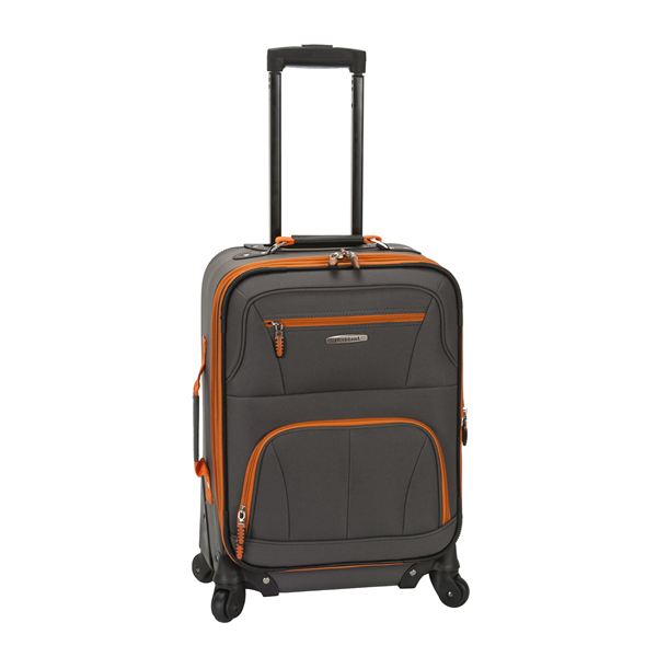 Upright is made of 900 high density polyester. Features 4 multi-directional spinner wheels that rotate 360 degrees for easy maneuverability; internal, aluminum telescoping handle with push button; interior mesh and zip pocket and elastic pocket; and a 5 year limited warranty.