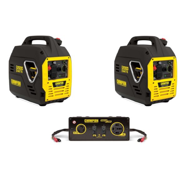 Includes two-2000 Watt Inverter Generators & 1-50-Amp Paralink Parallel Kit. 79cc engine with a quiet 53dBA for up to 11 hours of run time produces 2000 starting and 1700 running watts. Features recoil start; Cold Start Technology; 2 covered 120V 20A household outlets; and 2 handy USB ports. ParaLink Parallel kit quickly and easily installed without tools and includes circuit breakers plus 120V 30A locking and 120V 50A RV outlets.