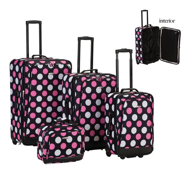 4 pc. set includes: 28" upright, 24" upright, 19" upright and 14" tote. All are made of 600 High Density polyester print. Uprights expand and feature full interior lining, 2 in-line skate wheels with molded wheel housings, integrated I.D. tags, EVA foam front panels, 3 year limited warranty and top and side exterior handles.