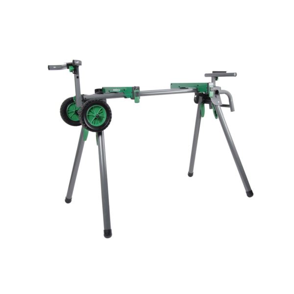 Features Heavy-duty steel construction to support up to 400lbs; Material support extensions; Accepts up to 12" sliding compound miter saw; Tool-less height adjustment of material supports for quick and easy set up; Quick-Release mounting brackets; Non-marring rubber feet on mounting brackets; Installed material stops are adjustable; Large 8" treaded wheels; Weighs only 50lbs. Includes Anchor Plates and Auxiliary Mounting Brackets.