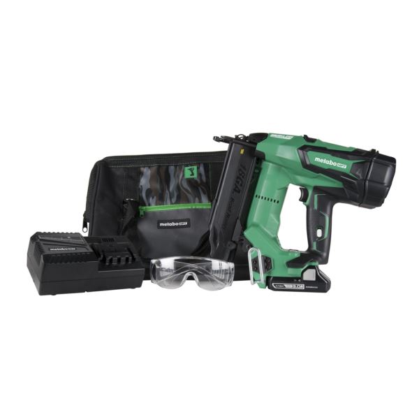 Feat. Brushless motor; Compact 3.0Ah Li-Ion battery; Selective actuation switch transitions between sequential mode and bump fire mode; Tool-less depth of drive adjustment; Quick clear nose w/ tool-less jam release; LED light; Automatic shut off; Side-lock switch; Detachable no-mar nose cap; Pivoting belt hook; Compatible w/ Hitachi 18V Li-Ion slide type batteries. Incl. 3.0Ah Li-Ion Battery, Charger, Contractor Bag & Safety Glasses.